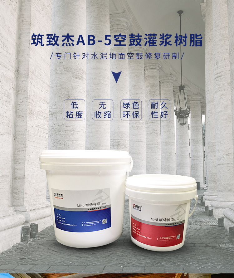 筑致杰AB-5型灌漿樹脂為石材空鼓處理專用膠,對于砂漿、混凝土、磚板的空鼓處理等各種狀況盡可進(jìn)行灌漿處理。